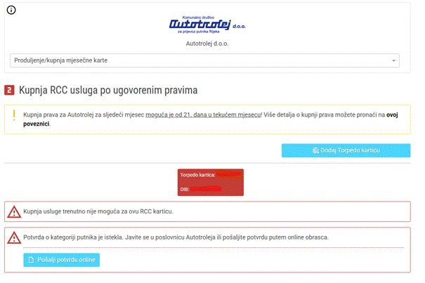 Nakon obrade zaprimljenog zahtjeva biti će omogućena kupnja prava za mjesec listopad putem RCC web servisa te na kioscima Tisak plus ili iNovine.